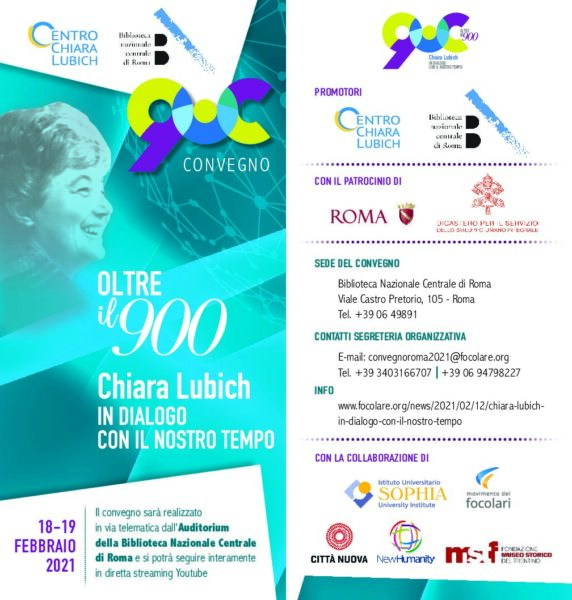 Convegno “Oltre il Novecento. Chiara Lubich in dialogo con il nostro tempo”: due giornate di studio (18 e 19 febbraio 2021) dedicate alla figura della fondatrice del Movimento dei Focolari presso la Biblioteca Nazionale Centrale di Roma.